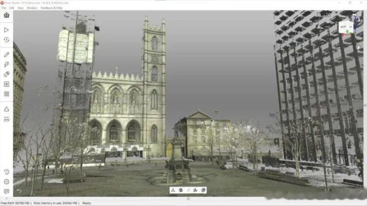 位于城市骨干说念旁,相聚环境受到车辆与行东说念主动态侵犯时时。团队讹诈Artec Ray II在街对面进行远距扫描,并通过无东说念主机获取高空图像,在Artec Studio中和会数据,告捷绕过交通拦阻,重建出遗迹复杂结构的三维模子。